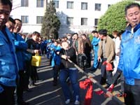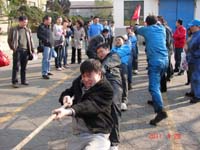 2011年4月25日下午,隨著裁判的一聲哨響,我公司慶五一拔河比賽拉開了戰幕。參賽隊員齊心協力各不相讓,比賽過程緊張激烈,精彩不斷,現場氣氛異常高漲,場上的隊員在奮力拼搏的同時,場下拉拉隊也不甘示弱,吶喊如雷貫耳,一浪高過一浪。10個代表隊經過5天15場的激烈角逐,男子組第一名:三分廠;第二名:五分廠;第三名:四分廠。女子組第一名:二分廠;第二名:三、四分廠聯隊;第三名:五分廠。這次比賽活躍了員工的業余生活,展現了員工良好的身體素質,增進了員工間的溝通與團隊合作。