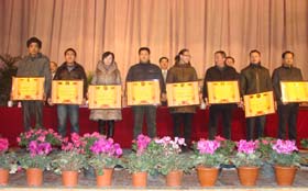 會議總結(jié)了集團公司2011年以來的工作,部署了2012年的工作目標和任務。對在2011年度三個文明建設(shè)中做出突出成績的24個分廠、車間、部室“授予文明單位” 稱號,55個班組授予“文明班組”稱號,939名員工授予“文明員工”稱號。同時授予8個單位“先進單位”稱號,授予18個班組“先進班組”稱號,授予11名同志為集團公司“勞動模范”稱號。授予152名同志為“先進生產(chǎn)者”稱號。